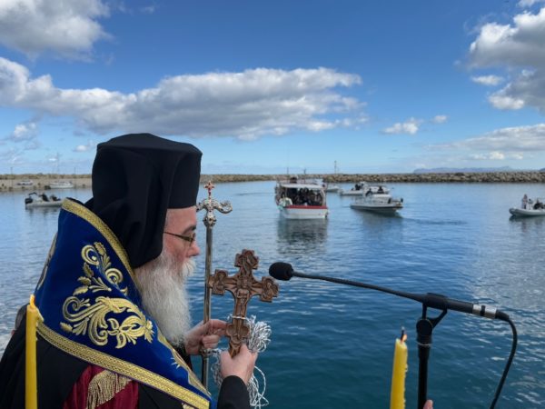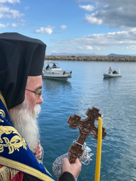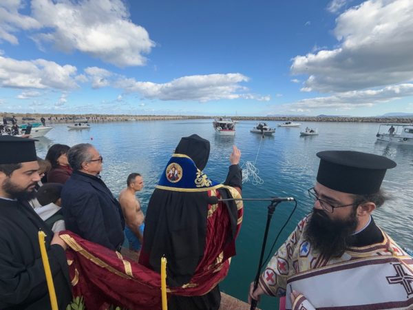 Ας γίνει η σημερινή αυτή ημέρα της Θείας Επιφανείας αιτία-καιρός για όλους μας ανοίγματος των ψυχών και των καρδιών μας στο φως της γνώσεως και της αγάπης του Θεού. Για να διαλυθούν τα σκοτάδια της αγνωσίας μας, της αμφιβολίας και απιστίας μας», κατέληξε ο οικείος Επίσκοπος, επαινώντας τους δεκάδες ‘κολυμβητές’ που αψήφησαν τα παγωμένα νερά και βούτηξαν στην θάλασσα για την ευλογία του Τιμίου Σταυρού, σημειώνοντας «Όσο θα υπάρχουν νέοι και νέες, Ορθόδοξα νιάτα, που νιώθουν την ανάγκη της υπέρβασης, στο όνομα της πίστης, καθώς το βούτηγμα σε παγωμένα νερά στην καρδιά του χειμώνα, τι άλλο παρά υπέρβαση είναι, τόσο θα στερεώνεται η πίστη στον Χριστό και την Εκκλησία Του».