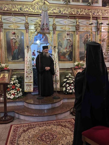 Του Εσπερινού ακολούθησε ομιλία υπό του Αιδ. Πρωτ. π. Σπυρίδωνος Βασιλάκου, Ιερ. Προϊσταμένου του Ιερού Προσκυνηματικού Ναού Ευαγγελιστού Λουκά, Θηβών, ο οποίος μίλησε με θέμα: «Από την ύβριν της φύσεως στην Αγιότητα του προσώπου».