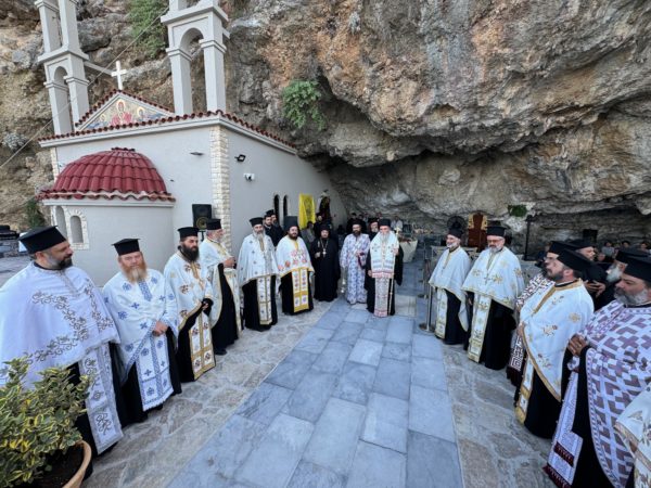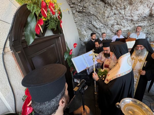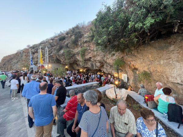 Ο Σεβ. Ποιμενάρχης κ. Αμφιλόχιος, αφού ευχαρίστησε τον Αρχ. π. Ιερόθεο Δασκαλάκη, δια «την μεγάλη ευλογία που κόμισε», ευχαριστώντας και τον Σεβ. Αρχιεπίσκοπο Κρήτης κ. Ευγένιο «δια την ευλογητική άδεια» ανέφερε: «Μεγάλη η συγκίνηση μας και πολύ η χαρά μας καθότι αξιωθήκαμε, 77 χρόνια μετά από τα εγκαίνια του όμορφου και ιδιαιτέρου κάλλους σπηλαιώδους αυτού Ιερού Ναού, να προβούμε, με την Χάρι του Θεού και τις ακοίμητες πρεσβείες του Τίμιου Προδρόμου, στην εκ βάθρων ανακαίνιση του ιερού ετούτου τόπου ως και στον εξωραϊσμό και καλλωπισμό του περιβάλλοντος χώρου του, με απόλυτο σεβασμό στην ιστορία του. 24 Ιουνίου του 1947, δηλαδή την ίδια ημερομηνία με την σημερινή, 24 Ιουνίου, πριν από 77 ολόκληρα χρόνια, ο τότε Επίσκοπος Κισάμου και Σελίνου, Ευδόκιμος, είχε τελέσει τα Ιερά Εγκαίνια ετούτου του Ναού. Και εμείς αξιωνόμαστε σήμερα 77 χρόνια μετά, χωρίς να γνωρίζουμε το ιστορικό αυτό όταν πήραμε την τελική απόφαση αλλαγής της ημερομηνίας, αφού είχαμε προγραμματίσει την τέλεση των Θυρανοιξίων δια την 23η Ιουνίου (παραμονή της εορτής του Γενεσίου του Τιμίου Προδρόμου), την οποία μετακινήσαμε κατά 1 ημέρα, καθώς συνέπιπτε με την εορτή του Αγίου Πνεύματος, αξιωνόμαστε, ακριβώς την ίδια ημερομηνία, 24 Ιουνίου, να τελούμε τα Θυρανοίξια του ίδιου Ναού! Είναι σαφές, πιστεύουμε, ότι αυτό δεν λογίζεται ως «τυχαίο» γεγονός, καθώς στην ζωή της Εκκλησίας δεν υπάρχουν «τυχαιότητες», πρόκειται περί «θείας συγκυρίας», με πολλά μηνύματα για όλους μας».
