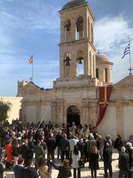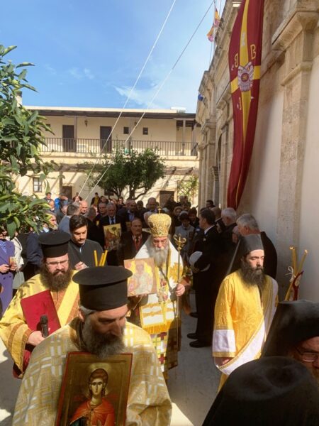 Η Πατριαρχική Μονή Γωνιάς κατακλύστηκε από πλήθος πιστών, πολλοί από τους οποίους μετείχαν εις το Μυστήριο της Θείας Ευχαριστίας. Τον Πρωθυπουργό της Χώρας εκπροσώπησε ο Υφυπουργός Παιδείας και Θρησκευμάτων κ. Βασίλειος Διγαλάκης. Μετείχαν ο Βουλευτής Χανίων κ. Μανούσος Βολουδάκης, η Διευθύντρια του Πολιτικού Γραφείο της Βουλευτού Χανίων κας Ντόρας Μπακογιάννη, λόγω απουσίας, ο Αντιπεριφερειάρχης Χανίων κ. Νικόλαος Καλογερής, όλοι οι Δήμαρχοι της περιοχής, οι Πρυτανικές Αρχές του Πολυτεχνείου Κρήτης, Άρχοντες οφικιάλιοι του Οικουμενικού Θρόνου, όλοι οι Διοικητές των Μονάδων (Στρατού, Αστυνομίας, Αεροπορίας, Ναυτικού, Πυροσβεστικής, κ.α.) του Νομού Χανίων, εκπρόσωποι Αρχών και Φορέων και πλήθος κόσμου, τόσο εις την Θεία Λειτουργία, όσο και εις την εορτή της ΟΑΚ.