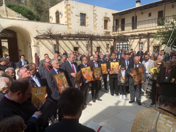 Στην ιστορική Ιερά Πατριαρχική και Σταυροπηγική Μονή Οδηγητρίας Γωνιάς εορτάστηκε η μεγάλη ημέρα και εορτή της πίστεως και ευσεβείας μας, η Κυριακή της Ορθοδοξίας, ιερουργούντος του Σεβ. Μητροπολίτου Κισάμου και Σελίνου κ. Αμφιλοχίου. Της Θείας Λειτουργίας ακολούθησε η λιτάνευσις των Ιερών Εικόνων, κατά το Βυζαντινό Τυπικό, πέριξ της Μονής.