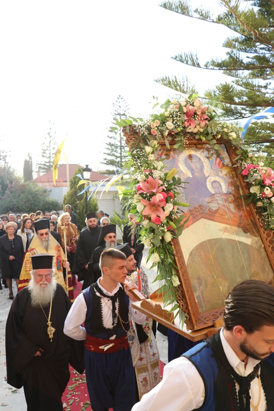 Την κυριώνυμο ημέρα της εορτής τελέστηκε Πανηγυρική Θεία Λειτουργία, ιερουργούντος του Σεβ. Μητροπολίτου Κισάμου και Σελίνου κ. Αμφιλοχίου και το εσπέρας ο μεθεόρτιος Εσπερινός αποδόσεως της εορτής, κτητορικό μνημόσυνο και ακολούθησε επετειακή εκδήλωση, με κεντρικό ομιλητή τον Πανοσιολογιώτατο Αρχιαμανδρίτη κ. Πρόδρομο Ξενάκη, Αρχιγραμματέα της Ι. Επαρχιακής Συνόδου της Εκκλησίας Κρήτης.