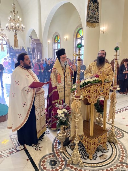 Ο Σεβασμιώτατος Ποιμενάρχης κ. Αμφιλόχιος, με λόγους αγάπης, καλωσόρισε τους πολυπληθείς προσκυνητές που είχαν κατακλύσει τον Ι. Ναό και τους προαύλιους χώρους του ιερού προσκυνήματος, από τον Νομό Χανίων και άλλα μέρη της Κρήτης, σημειώνοντας: