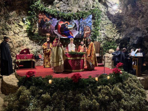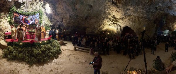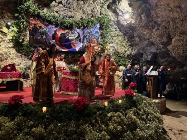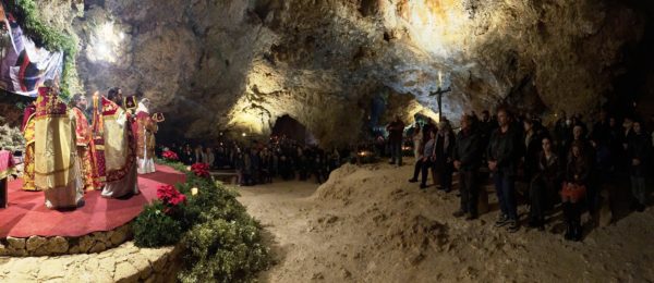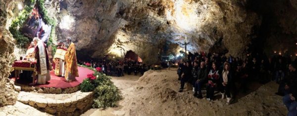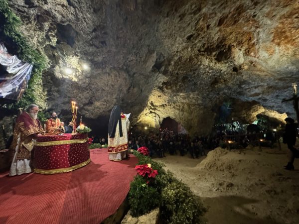 Τα πλήθη των πιστών που κατέκλυσαν το ιερό σπήλαιο μετείχαν, με δέος και ευλάβεια, εις την Θεία Λειτουργία, εκατοντάδες δε εξ΄ αυτών κοινώνησαν των Αχράντων Μυστηρίων, επί αρκετή ώρα από τα τρία άγια Ποτήρια που είχαν προετοιμαστεί.