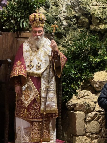 Την Χριστουγεννιάτικη Εγκύκλιο του Σεβασμιωτάτου ανέγνωσε ο Παν. Αρχιμναδρίτης π. Χρύσανθος (Τσαχάκης), αδελφός της Ιεράς Πατριαρχικής Μονής Γωνιάς, ο δε Σεβασμιώτατος Ποιμενάρχης κ. Αμφιλόχιος, ευχόμενος με λόγους καρδιακούς προς τους εκατοντάδες πιστούς σημείωσε: