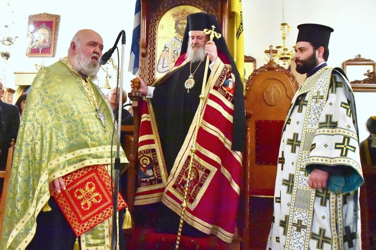 Στο τέλος του εσπερινού ο Σεβασμιώτατος χειροθέτησε σε Πρωτοπρεσβύτερο τον οικείο Εφημέριο π. Απόστολο Διαμαντούδη, επαινέσας τον για την διακονία και προσφορά του στην Εκκλησία.