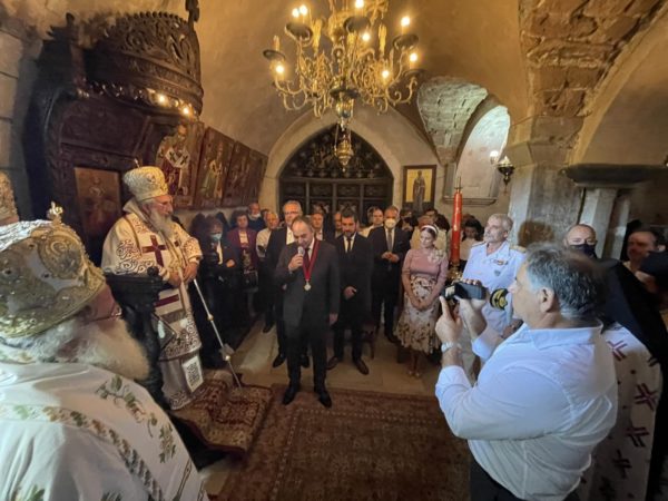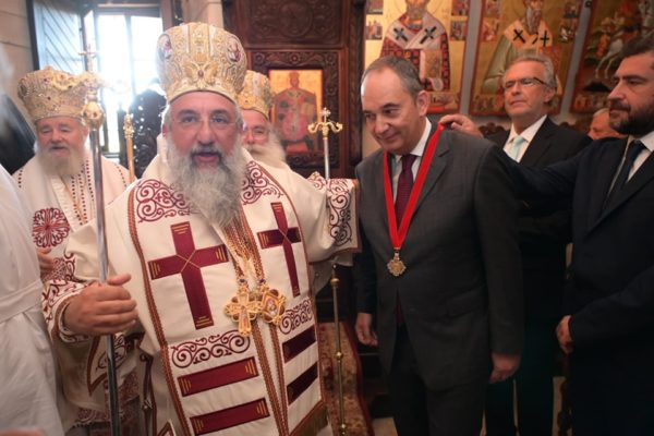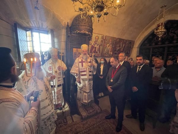 Πριν το πέρας της Θείας Λειτουργίας ο Σεβασμιώτατος Αρχιεπίσκοπος Κρήτης και Πρόεδρος της Ιεράς Επαρχιακής Συνόδου της Εκκλησίας Κρήτης, απένειμε στον Υπουργό Ναυτιλίας και Νησιωτικής Πολιτικής εντιμότατο κ. Ιωάννη Πλακιωτάκη, τον Σταυρό των Αποστόλων Παύλου του Πρωτοκορυφαίου και Τίτου πρώτου Επισκόπου Κρήτης, που αποτελεί την ανώτατη τιμητική διάκριση της Εκκλησίας της Κρήτης, για την όλη πολύπλευρη και σημαντική προσφορά του στην τοπική Εκκλησία, στην πανηγυρίζουσα Ιερά Σταυροπηγιακή Μονή Τοπλού, στην ιδιαίτερη πατρίδα του τη Σητεία, το Λασίθι, στην Κρήτη και την πατρίδα μας.
