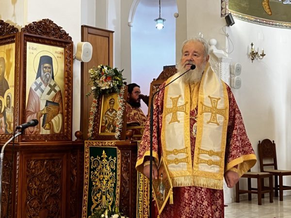Κατόπιν ο Μητροπολίτης κ. Αμφιλόχιος με λόγια επίκαιρα, ωφέλιμα και πνευματικά μίλησε προς το ευσεβές εκκλησίασμα για την ζωή του Μεγαλομάρτυρος Αγίου Δημητρίου και του Αγίου Νικηφόρου του Λεπρού του οποίου το ιερό λείψανο είναι από την παραμονή της εορτής τοποθετημένο στο κέντρο του Ναού ως ευλογία μεγάλη για την Μητρόπολη και την Ενορία.
