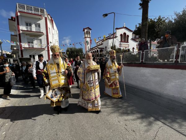 Πρίν την έξοδο του Ιερού Λειψάνου του Αγίου και της Ιεράς Εικόνας της Παναγίας Σπηλιανής εντός του Ιερού Ναού ο Σεβασμιώτατος Μητροπολίτης κ. Δαμασκηνός, ευχαρίστησε του Αρχιερείς για την αποδοχή της προσκλήσεως του να συμμετάσχουν των ακολουθιών προς τιμήν του Αγίου Νεκταρίου και τους ευχήθηκε ο Άγιος να τους δίνει δύναμη.