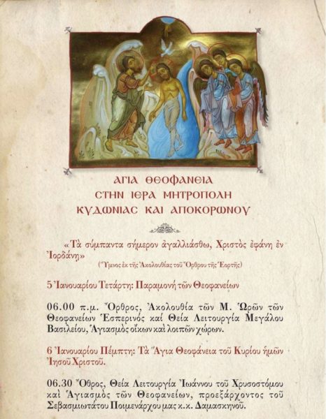 Εξαιτίας της μεγάλης αύξησης των κρουσμάτων κορωνοϊού στην χώρα από την μετάλλαξη “Όμικρον” δεν θα πραγματοποιηθεί η επίσημη μετάβαση στο παλαιό Λιμάνι των Χανίων για την κατάδυση στην θάλασσα του Τιμίου Σταυρού, αύριο Πέμπτη 6 Ιανουαρίου, όπως ανακοίνωσε η Ιερά Μητρόπολη Κυδωνίας και Αποκορώνου.