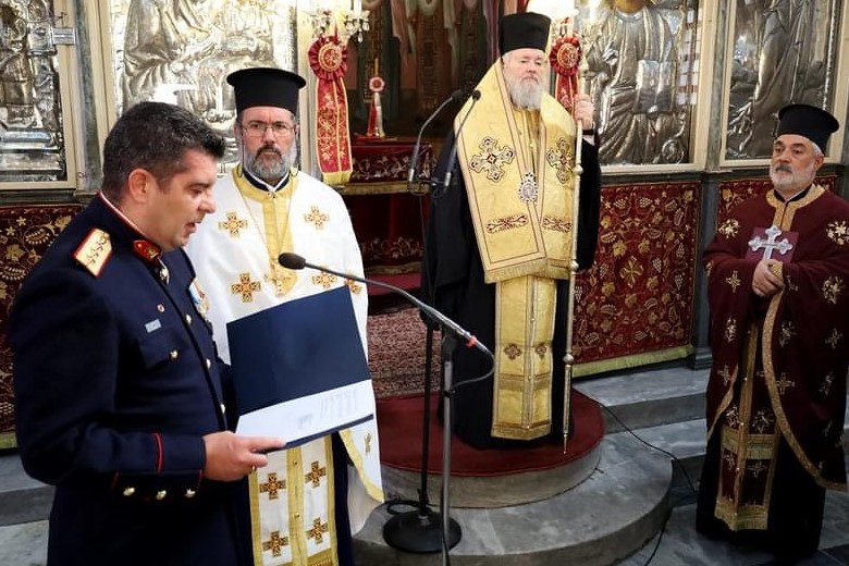 Η ΔΙ.Π.Υ.Ν. Χανίων τίμησε σήμερα την μνήμη των Αγίων Τριών Παίδων εν Καμίνω, Προστατών του Πυροσβεστικού Σώματος, με την τέλεση της επίσημης Δοξολογίας σήμερα στον Ιερό Μητροπολιτικό Ναό Εισοδίων της Θεοτόκου ιερουργούντος του Σεβασμιωτάτου Μητροπολίτη Κυδωνίας και Αποκορώνου κ. Δαμασκηνού.