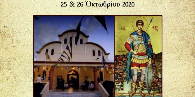 Παραθέτουμε το Πρόγραμμα Ιερών Εγκαινίων και Ιεράς Πανηγύρεως ΑγίουΔημητρίου Κουνουπιδιανών, κατά το διήμερο 25 – 26 Οκτωβρίου 2020: