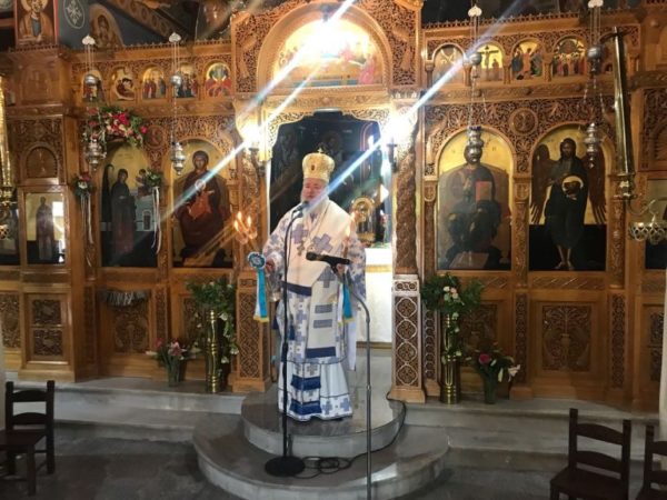 Την κυριώνυμο ημέρα της εορτής τελέσθηκε Αρχιερατική Θεία Λειτουργία ιερουργούντος του Σεβασμιωτάτου κ. Δαμασκηνού παρουσία κληρικών της Μητροπόλεως και συμπροσευχουμένων ευλαβών Χριστιανών που ήρθαν να προσκυνήσουν την χάρη της Αγίας Ειρήνης.
