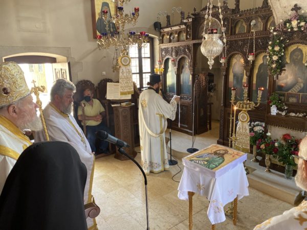 Στην Αρχιερατική Θεία Λειτουργία ιερούργησε ο Σεβασμιώτατος Μητροπολίτης Κυδωνίας και Αποκορώνου κ. Δαμασκηνός, ενώ έλαβαν μέρος ιερείς της Μητροπόλεως, συμπροσευχουμένης της Καθηγουμένης της Μονής Γερόντισσας Θεοφόρας, της Προηγουμένης της Μονής Γερόντισσας Αγαθαγγέλης, της αδελφότητος, αντιπροσωπείας εκ της Ιεράς Πατριαρχικής και Σταυροπηγιακής Μονής Χρυσοπηγής Χανίων και πλήθους ευσεβών προσκυνητών, ανάμεσα των του Άρχοντος του Οικουμενικού Πατριαρχείου Γρηγορίου Λαρεντζάκη και τοπικών αρχόντων.
