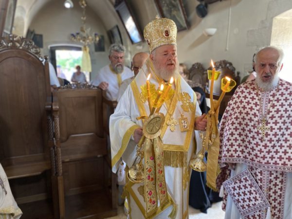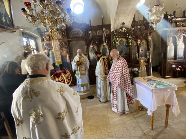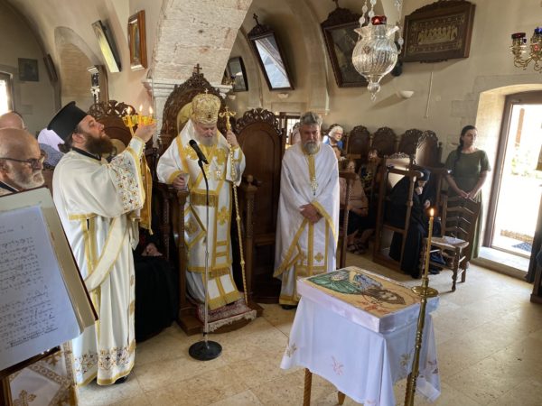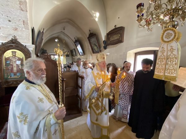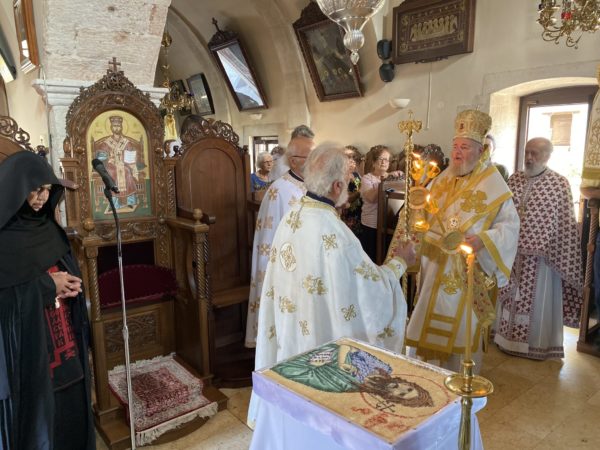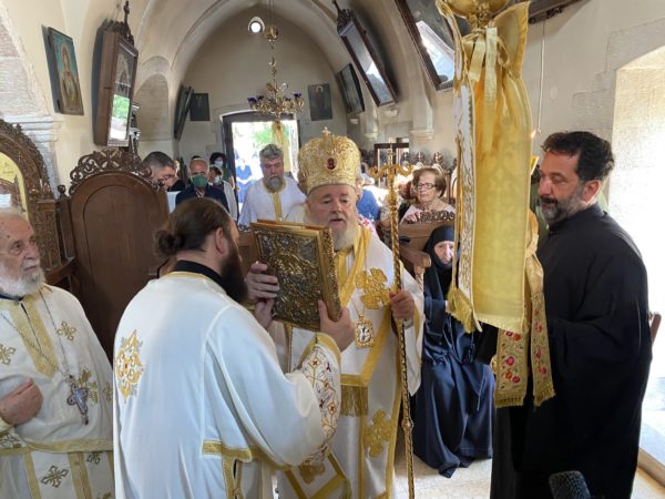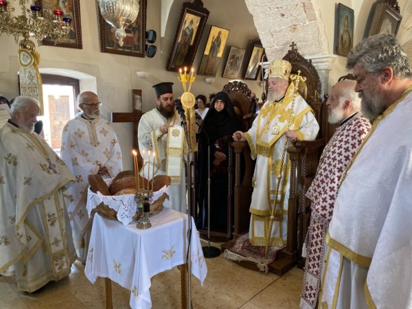 Στην Αρχιερατική Θεία Λειτουργία ιερούργησε ο Σεβασμιώτατος Μητροπολίτης Κυδωνίας και Αποκορώνου κ. Δαμασκηνός, ενώ έλαβαν μέρος ιερείς της Μητροπόλεως, συμπροσευχουμένης της Καθηγουμένης της Μονής Γερόντισσας Θεοφόρας, της Προηγουμένης της Μονής Γερόντισσας Αγαθαγγέλης, της αδελφότητος, αντιπροσωπείας εκ της Ιεράς Πατριαρχικής και Σταυροπηγιακής Μονής Χρυσοπηγής Χανίων και πλήθους ευσεβών προσκυνητών, ανάμεσα των του Άρχοντος του Οικουμενικού Πατριαρχείου Γρηγορίου Λαρεντζάκη και τοπικών αρχόντων.