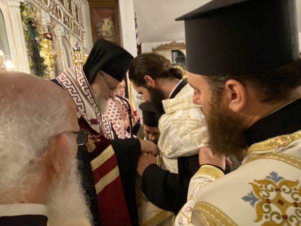 Πριν το τέλος της ακολουθίας ο Σεβασμιώτατος απένειμε το οφφίκιο της πνευματικής πατρότητος μετά επιγονατίου στον καλοσυνάτο εφημέριο του Ναού, π. Αλέξανδρο Ξηρουχάκη, έπειτα από εισήγηση του πνευματικού του Πρωτ. Εμμανουήλ Τζατζάνη.