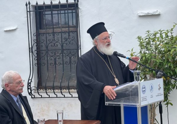 Ακολούθησε η ομιλία του Σεβ. Μητροπολίτη Αρκαλοχωρίου κ. Ανδρέα, με θέμα: «Στον Ελευθέριο Βενιζέλο, από τους Καραθεοδωρήδες και τους Αδοσίδηδες. Η ρωμιοσύνη αποσπερίζει». Ο Σεβασμιώτατος κ. Ανδρέας επικεντρώθηκε στις σχέσεις του νεαρού τότε Ελευθερίου Βενιζέλου, με τον χριστιανό Διοικητή Κρήτης, Αλέξανδρο Καραθεοδωρή, αλλά και τον ανεψιό του, διαπρεπή μαθηματικό Κωνσταντίνο Καραθεοδωρή. Επίσης, στον Κωστάκη Αδοσίδη, στον γιο του Αναστάση Αδοσίδη και τη σύζυγό του Έλλη Χατζηλαζάρου, από τη γνωστή μεγαλοαστική οικογένεια της Θεσσαλονίκης.