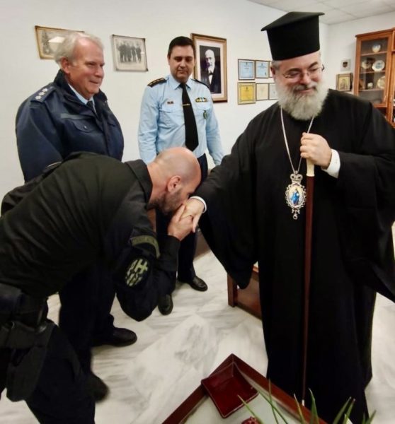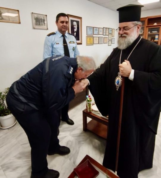 Με ιδιαίτερη τιμή και εγκαρδιότητα, ο Αστυνομικός Διευθυντής Χανίων Ταξίαρχος Κανέλος Νικολάου υποδέχθηκε τον Σεβασμιώτατο Μητροπολίτη Κυδωνίας και Αποκορώνου κ. Τίτο, στο Μέγαρο της Αστυνομίας Χανίων.
