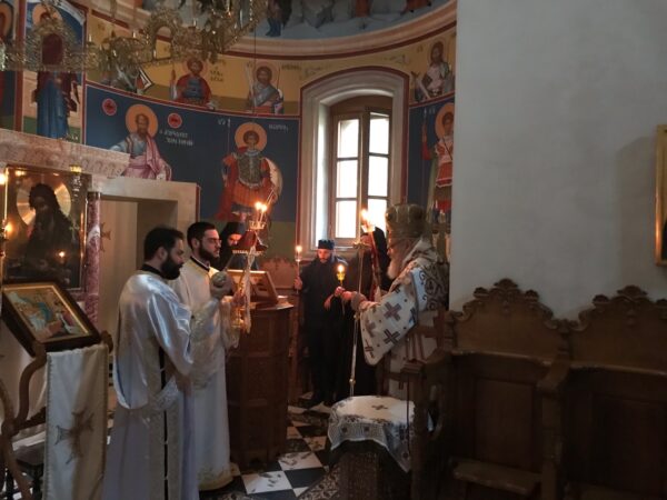 Στην πανηγυρική Δισαρχιερατική Θεία Λειτουργία που τελέσθηκε, ιερούργησε ο Σεβασμιώτατος Ποιμενάρχης Κυδωνίας και Αποκορώνου κ.κ. Δαμασκηνός συλλειτουργούντων του Θεοφιλεστάτου Επισκόπου Ευμενείας και Καθηγουμένου της Μονής κ.κ. Ειρηναίου, ενώ έλαβαν μέρος κληρικοί της αδελφότητος.