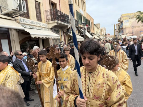 Κατόπιν τελέσθηκε η καθιερωμένη επίσημη Δοξολογία και εν συνεχεία η λιτάνευσις της Ιεράς Εικόνος της Παναγίας μας στους δρόμους της πόλεως των Χανίων με προπομπό την αστυνομία και με συνοδεία αγήματος στρατιωτών, της Μπάντας της 5ης Α/Μ ταξιαρχίας Πεζικού, της Μπάντας του Δήμου, σχολείων της πόλεως και παραδοσιακών συλλόγων.