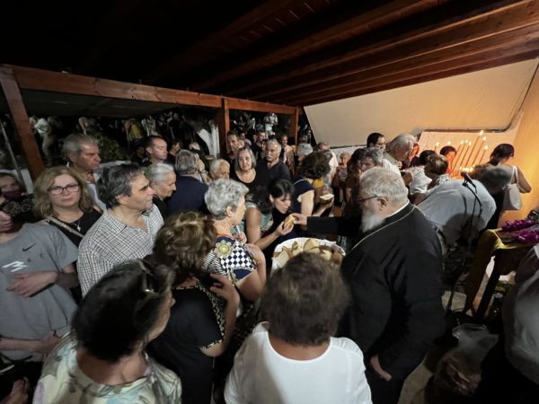 Παραμονή της εορτής, Παρασκευή 5 Αυγούστου, τελέστηκε ο μέγας πανηγυρικός Αρχιερατικός Εσπερινός στο Μετόχι της Μεταμορφώσεως της Ιεράς Μονής Τιμίου Προδρόμου Κορακιών Ακρωτηρίου, χοροστατούντος του Σεβασμιωτάτου κ. Δαμασκηνού, ο οποίος κήρυξε και τον Θείο Λόγο, συμπροσευχουμένων Κληρικών της Μητροπόλεως, της Καθηγουμένης της Ιεράς Μονής Γερόντισσας Θεοφόρας μετά της Αδελφότητος και πλήθος κόσμου.