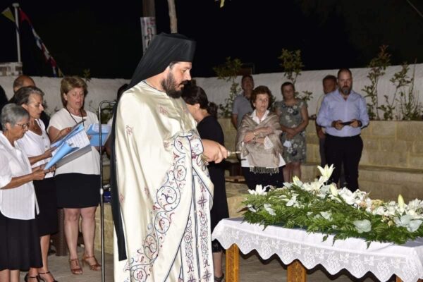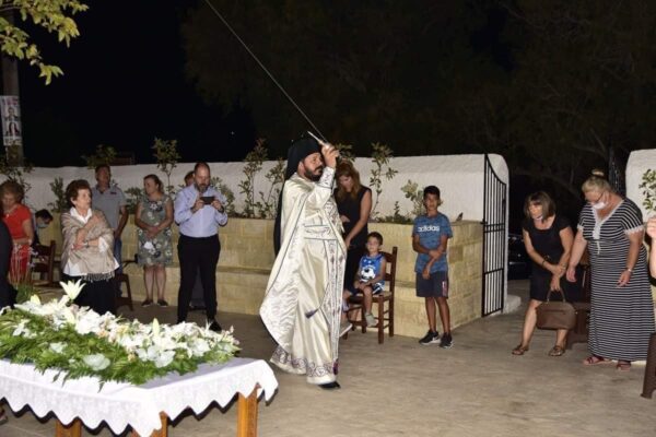 Στον Άγιο Ονούφριο της Ενορίας Κουνουπιδιανών όπου διακονεί ο Πανοσιώτατος Αρχιμ. Νικηφόρος από την Ιερά Μονή Αγίας Τριάδος των Τζαγκαρόλων, τελέσθηκε το Εσπέρας του Σαββάτου βραδυνή Θεία Λειτουργία για την απόδοση της εορτής της Κοιμήσεως της Θεοτόκου, χοροστατούντος του Πρωτοσυγκελλεύοντος της Ιεράς Μητροπόλεως Κυδωνίας και Αποκορώνου Θεοφιλεστάτου Επισκόπου Δορυλαίου κ.Δαμασκηνού, Καθηγουμένου της Ιεράς Μονής Αγίας Τριάδος των Τζαγκαρόλων.
