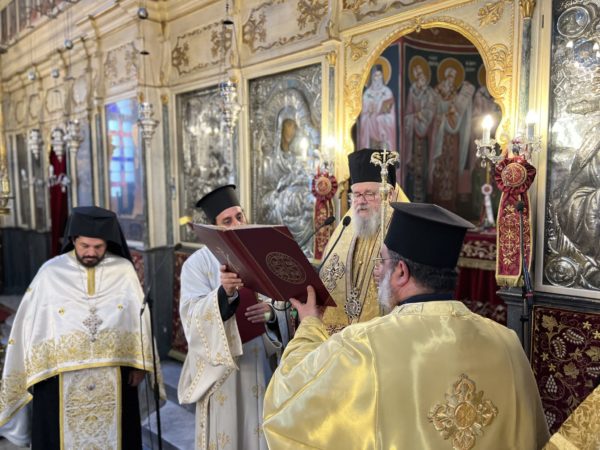 Κατόπιν με την ευκαιρία του εορτασμού της πρώτης ημέρας του Νέου Έτους, πραγματοποιήθηκε η Επίσημη Δοξολογία στο Μητροπολιτικό Ναό των Εισοδίων της Θεοτόκου χοροστατούντος του Σεβασμιωτάτου και συμπροσευχουμένων του Πρωτοσυγκέλλου Αρχιμανδρίτη του Οικουμενικού Θρόνου Νικηφόρου Εικοσιδέκα, κληρικών της Μητροπόλεως και σύσσωμης της πολιτικής και στρατιωτικής ηγεσίας του τόπου.