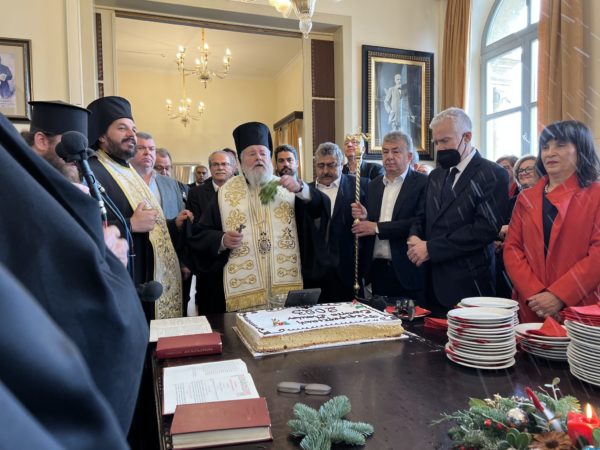 Στη συνέχεια ακολούθησε αγιασμός και κοπή της πρωτοχρονιάτικης πίτας της Περιφερειακής Ενότητας Χανίων, στο Μέγαρο της Αντιπεριφέρειας.