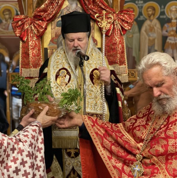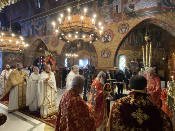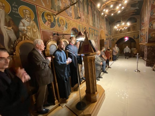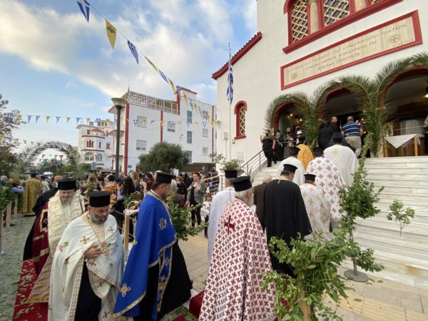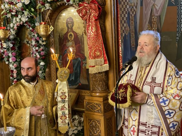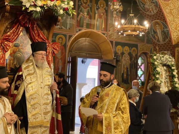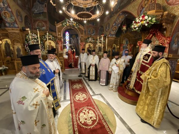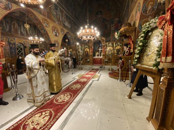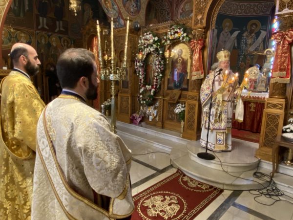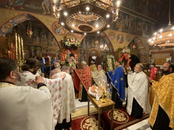 Στη συνέχεια ακολούθησε σύντομη Δοξολογία στο Ναό και κατόπιν ο πανηγυρικός Αρχιερατικός Εσπερινός, προεξάρχοντος του Σεβασμιωτάτου Μητροπολίτη κ. Δαμασκηνού.