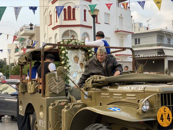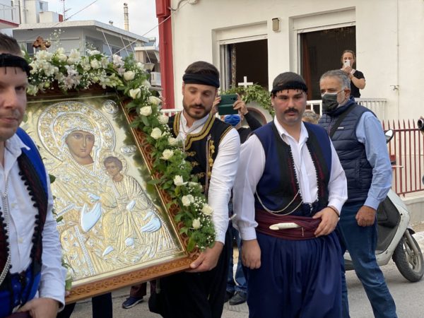 Την παραμονή της εορτής ο Σεβασμιώτατος Μητροπολίτης Κυδωνίας και Αποκορώνου κ. Δαμασκηνός μαζί με τον κλήρο και το λαό υποδέχτηκαν το αντίγραφο της Ιεράς και θαυματουργού εικόνας της Παναγίας Πορταϊτίσσης εκ της Ιεράς Μονής Ιβήρων Αγίου Όρους στο προαύλιο του Ιερού Ναού Αγίου Νεκταρίου Χανίων. Την ώρα που η μπάντα του Δήμου Χανίων παιάνιζε και οι καμπάνες ηχούσαν χαρμόσυνα, η εικόνα έφθανε στον ναό με αυτοκίνητο από τη λέσχη ιστορικών αυτοκινήτων. Κατά την υποδοχή, την ιερά εικόνα μετέφεραν άνδρες του παραδοσιακού χορευτικού συλλόγου “Ζάλος”, που φορούσαν κρητικές στολές, ενώ προπομπός τους ήταν το πλήρωμα των Σαραρειτών του Ε.Ε.Σ.