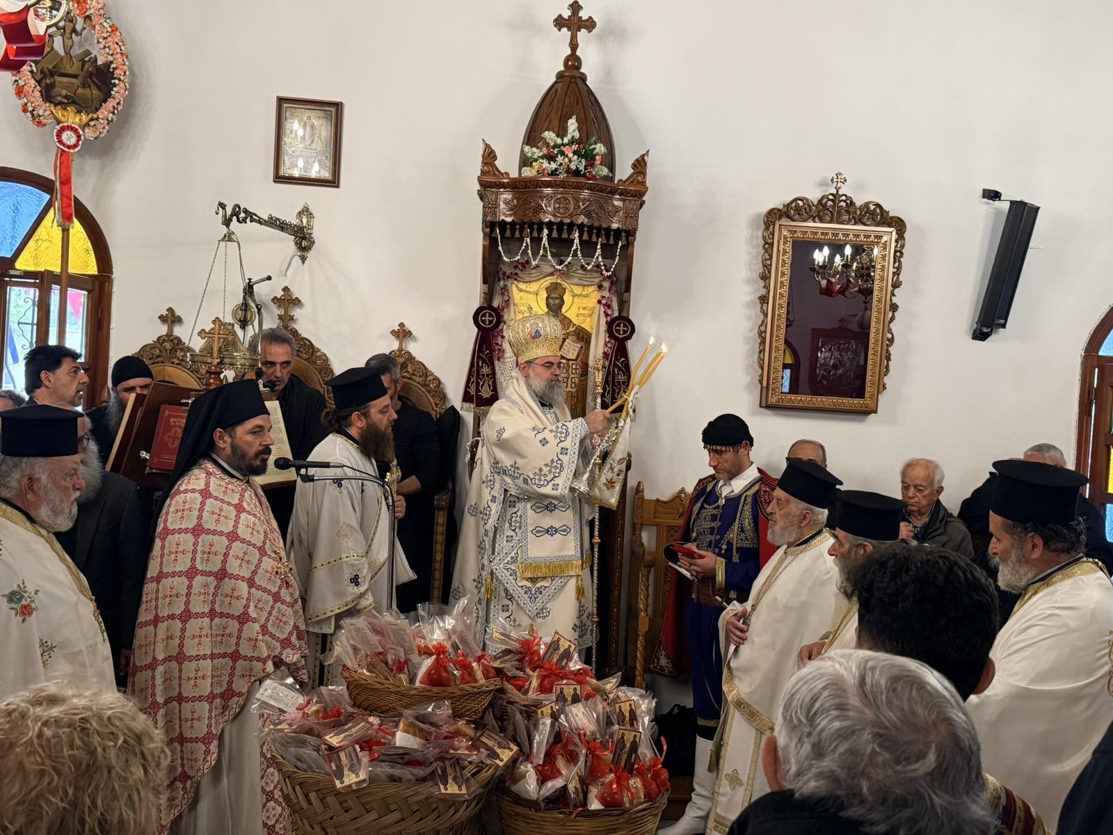 Στην Αρχιερατική Θεία Λειτουργία συμμετείχε πλειάδα κληρικών της Μητροπόλως, ενώ πλήθος ευσεβών προσκυνητών έδωσε το παρών, με πίστη και ευλάβεια.