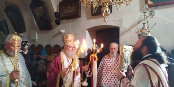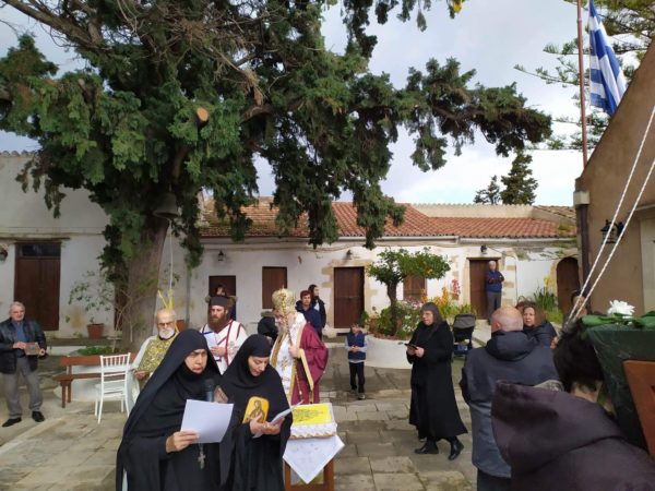 Στον Όρθρο χοροστάτησε και προέστη της Θείας Λειτουργίας ο Σεβασμιώτατος Μητροπολίτης Κυδωνίας και Αποκορώνου κ. Δαμασκηνός πλαισιωμένος από Κληρικούς της Μητροπόλεως μας, συμπροσευχουμένης της Καθηγουμένης της Ιεράς Μονής Γερόντισσας Θεοφόρας.