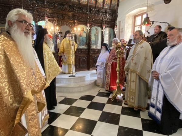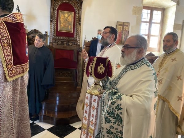 Στην Αρχιερατική Θεία Λειτουργία έλαβαν μέρος, ο Πανοσιολογιώτατος Αρχιμ. του Οικουμενικού Θρόνου Αμφιλόχιος Παπαγιαννάκης, ο Καθηγούμενος της Ιεράς Μονής Αγίου Γεωργίου Πανοσιολογιώτατος Αρχιμ. Ιερεμίας Χλιαράς, ο Πανοσιολογιώτατος Αρχιμ. Ευμένιος Ρενιέρης, ο Γενικός Αρχιερατικός Επίτροπος Πρωτ. του Οικουμενικού Θρόνου Γεώργιος Περάκης, ο Αρχιερατικός Επίτροπος της Στ’ Αρχιερατικής Περιφέρειας Γεώργιος Πετράκης, ο Πρωτ. Εμμανουήλ Παπαδοκωσταντάκης, ο Πρωτ. Δημήτριος Παρασκάκης, ο Πρωτ. Κων/νος Θωμαδάκης και ο Διάκονος Ελευθέριος Ξαγοραράκης.