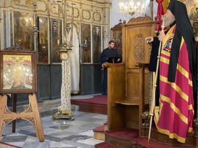 Στο τέλος της θείας Λειτουργίας εψάλει σε κλίμα κατανύξεως, από τους χορούς των ιεροψαλτών, ο ειδικός Παρακλητικός κανών προς τον Πανοικτίρμονα Κύριο για την απαλλαγή και εκλύτρωση του κόσμου από την ενσκήψασα μάστιγα της λοιμικής ασθένειας του κορωνοϊού.