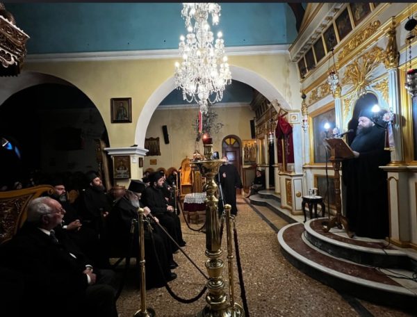 Μετά το πέρας του Εσπερινού ομίλησε με λόγια πνευματικά στο πνεύμα της ημέρας ο Παν/τος Αρχιμανδρίτης του Οικ. Θρόνου αδελφός της Ιεράς Μονής Κυρίας των Αγγέλων Γουβερνέτου Πορφύριος Μπικουβαράκης, αναπτύσσοντας το θέμα: Ἰδού, καιρὸς εὐπρόσδεκτος.