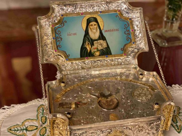 Την παραμονή της εορτής τελέστηκε πανηγυρικός Αρχιερατικός Εσπερινός προεξάρχοντος του Σεβασμιωτάτου Μητροπολίτη Κυδωνίας και Αποκορώνου κ. Δαμασκηνού, ο οποίος κατά την είσοδο του στο Ναό κόμισε και το ιερό λείψανο του νέου Αγίου της Εκκλησίας μας Αμφιλοχίου του Πάτμιου το οποίο έφερε η αδελφότητα της Ιεράς Πατριαρχικής και Σταυροπηγιακής Μονής Αγίας Τριάδος των Τζαγκαρόλων ως ευλογία για την πανήγυρη αυτήν.