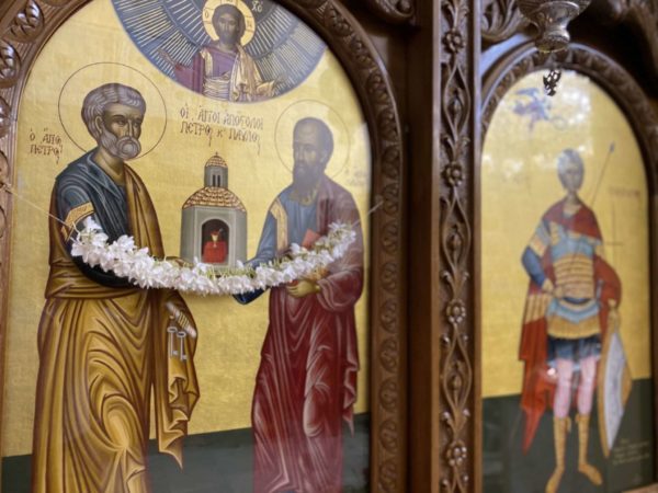 Στον Μεγαλοπρεπή Ναό των Αγίων Αποστόλων Πέτρου και Παύλου της πόλεως μας, στον οποίο διακονεί ο Πρωτ. Ιωάννης Μαστοράκης, ανήμερα της εορτής, τελέσθηκε πανηγυρική Αρχιερατική Θεία Λετουργία ιερουργούντος του Σεβασμιωτάτου Ποιμενάρχου μας κ. Δαμασκηνού