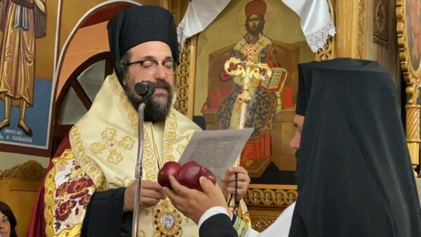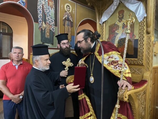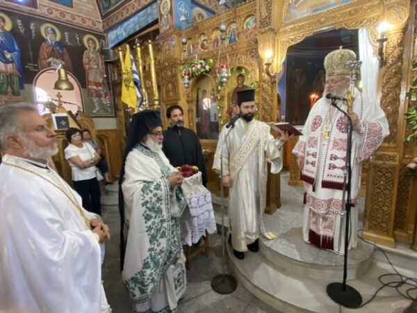 Πριν το πέρας της Ακολουθίας ο Ιερατικός προϊστάμενος του Ναού προσέφερε στον Θεοφιλέστατο ένα Αρχιερατικό εγκόλπιο εκ μέρους της Ενορίας ευχόμενος του να συνεχίσει τον άξιο δρόμο που είχε χαράξει και ως Πρωτοσύγκελλος, καλωσορίζοντας τον παράλληλα στην Ενορία που προσήλθε ως Επίσκοπος πρώτη φορά.
