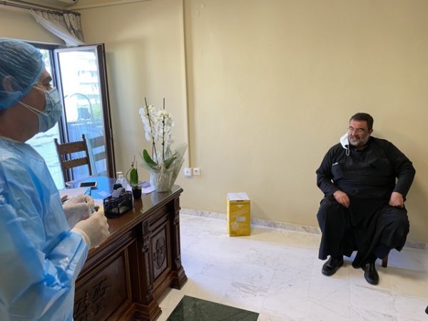 Ο Σεβασμιώτατος Μητροπολίτης κ.κ. Δαμασκηνός που υποβλήθηκε και ο ίδιος στο σχετικό τέστ ευχαρίστησε την ομάδα των Νοσηλευτών και τον επόπτη της Κινητής Ομάδος Υγείας Ειδικού Σκοπού(ΚΟΜΥ) κ. Στέφανο Ντουκάκη, για τον προληπτικό έλεγχο, ευχόμενος με την βοήθεια του Θεού, σύντομα να βγούμε όλοι από αυτή την πανδημία.