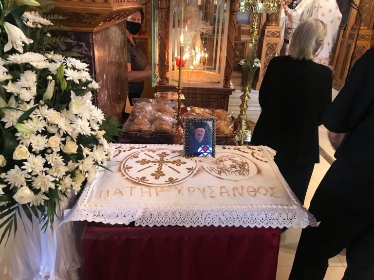 40νθήμερο μνημόσυνο τελέσθηκε το Σάββατο 28 Αυγούστου στον Ι.Ν. Αγ. Νεκταρίου στα Παχιανά Χανίων, σε στενό οικογενειακό κύκλο, εις ανάπαυσιν της ψυχής του μακαριστού αδελφού και συλλειτουργού Πρωτ. Χρυσάνθου Σταυρουλάκη.