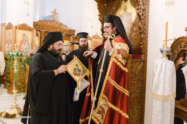 Παράλληλα προσέφερε στο Θεοφιλέστατο που πρώτη φορά επισκέφθηκε τον Ιερό Ναό του Αγίου Δημητρίου ως Επίσκοπος ένα επιγονάτιο με την μορφή του Αγίου Δημητρίου.