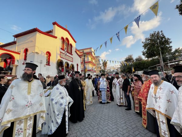 Μετά την δέηση που ανεπέμφθη ενώπιον της Ιεράς Εικόνος της Παναγίας η οποία ετοποθετήθη στο κέντρο του Ιερού Ναού, ετελέσθη ο μέγας Αρχιερατικός Εσπερινός, χοροστατούντος του Σεβασμιωτάτου Μητροπολίτη Κυδωνίας και Αποκορώνου , ο οποίος στό τέλος ομίλησε περί της Παναγίας μορφής της Υπερευλογημένης Δεσποίνης ημών Θεοτόκου και Αειπαρθένου Μαρίας.