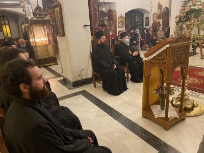 Σήμερα το απόγευμα πραγματοποιήθηκε στο πλαίσιο των πνευματικών εκδηλώσεων και καθημερινών Ακολουθιών μία όμορφη πνευματική ομιλία από τον Πρωτοπρεσβ. Δημήτριο Καταπίδη, ιερατικό προϊστάμενο της Ενορίας Αγίου Παντελεήμονος Χαλέπας, την οποία παρακολούθησε και ο Σεβασμιώτατος Μητροπολίτης Κυδωνίας και Αποκορώνου κ. Δαμασκηνός με θέμα: «Ζωή αληθινή με ελπίδα και αδιάλειπτη ένωση μας με την εκκλησία».