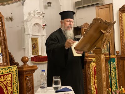 Σήμερα το απόγευμα πραγματοποιήθηκε στο πλαίσιο των πνευματικών εκδηλώσεων και καθημερινών Ακολουθιών μία όμορφη πνευματική ομιλία από τον Πρωτοπρεσβ. Δημήτριο Καταπίδη, ιερατικό προϊστάμενο της Ενορίας Αγίου Παντελεήμονος Χαλέπας, την οποία παρακολούθησε και ο Σεβασμιώτατος Μητροπολίτης Κυδωνίας και Αποκορώνου κ. Δαμασκηνός με θέμα: «Ζωή αληθινή με ελπίδα και αδιάλειπτη ένωση μας με την εκκλησία».