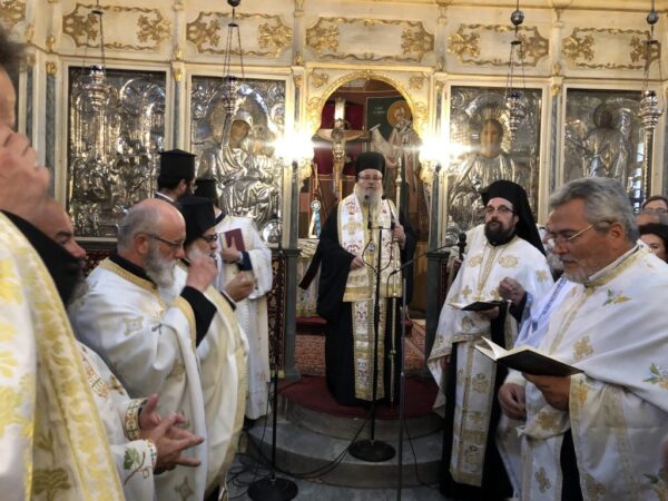 Προ της απολύσεως, ο Σεβ. Ποιμενάρχης με εμφανή την συγκίνηση εξεφώνησε Επικήδειο λόγο, σκιαγραφώντας δι’ ολίγον την σπάνια προσωπικότητα και τα προς μίμηση χαρίσματα του μακαριστού.