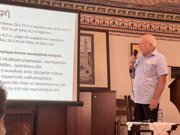 Ακολούθησε επετειακή εκδήλωση στο ενοριακό κέντρο στην οποία ομίλησαν ο κ. Δημήτριος Νικολακάκης, ιστορικός – ερευνητής και ο πολιτικός μηχανικός κ. Αντώνιος Μαρματάκης.