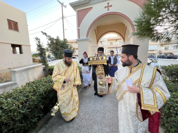 Ως ένδειξη ευγνωμοσύνης για την μεγάλη ευλογία, ο Πρωτοσύγκελλος προσέφερε εκ μέρους της Ενορίας στον Σεβασμιώτατο Μητροπολίτη Κισάμου και Σελίνου, ένα επιγωνάτιο με τη μορφή του Αγίου.
