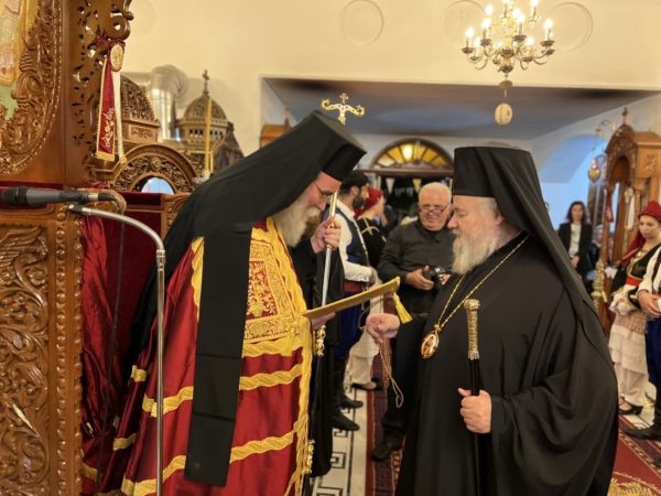 Κατόπιν ο Σεβασμιώτατος κ. Δαμασκηνός καλωσόρισε τον Μητροπολίτη Κισάμου και Σελίνου και τη Συνοδεία του στη Μητρόπολη απευθύνοντας αδελφικό χαιρετισμό.