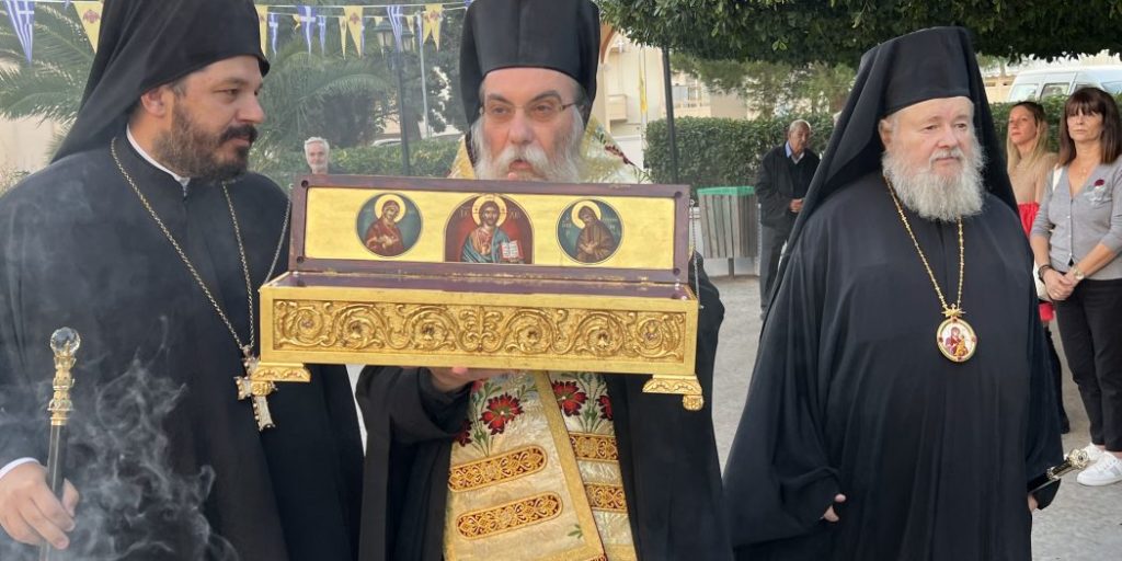 Μέσα σε πανηγυρικό κλίμα Κλήρος και Λαός υποδέχτηκαν την Τρίτη 25 Οκτωβρίου, παραμονή της εορτής του Αγίου Δημητρίου στον επιβλητικό Ναό της Ενορίας Κουνουπιδιανών Ακρωτηρίου, την χείρα του Οσίου Νικηφόρου του Λεπρού εκ του Συρικαρίου Κισάμου.