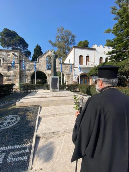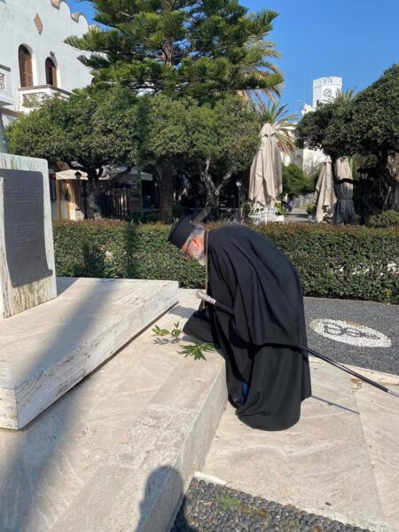 Στη συνέχεια τελέστηκε επιμνημόσυνη δέηση στο Ηρώο της Κω και στο Μνημείο των δύο Αρχιεπισκόπων Κώου, Ζαχαρίου και Γερασίμου, ενώ ψάλθηκε ο Εθνικός Ύμνος και κατατέθηκε ως ένδειξη τιμής και δόξας ένα κλαδί δάφνης.